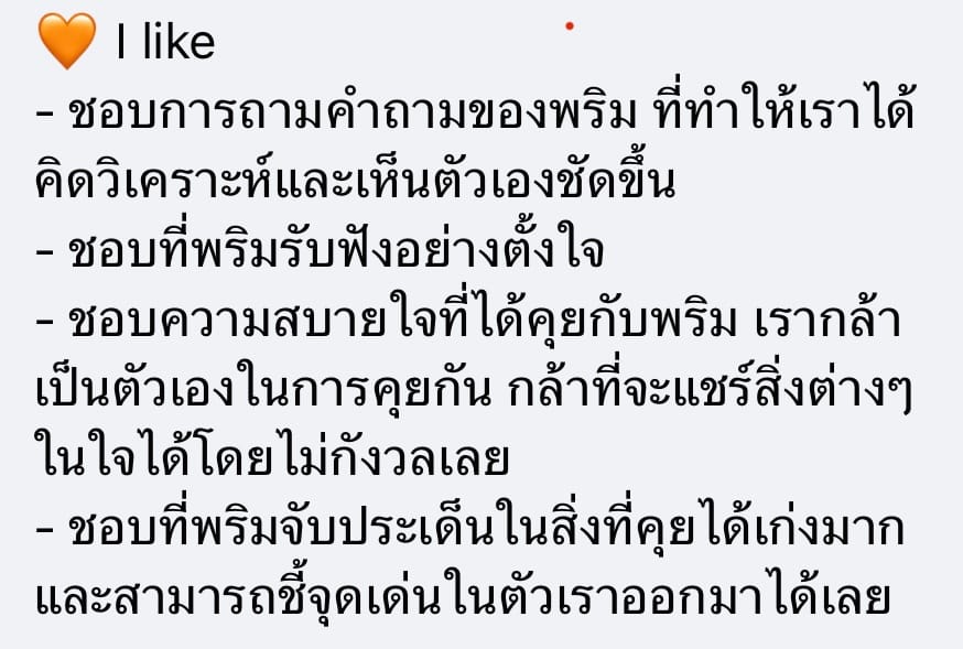 (หากจำเป็น) มีการ Follow-Up หลังปรึกษา 1 สัปดาห์ และ 1 เดือน เพื่อเช็คความคืบหน้า และการทำตามเป้าหมาย
