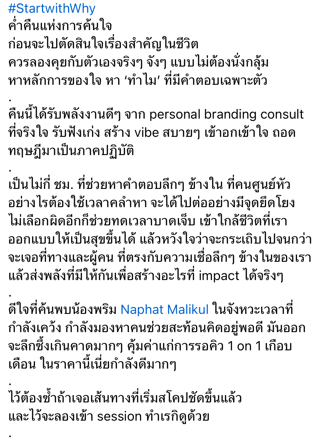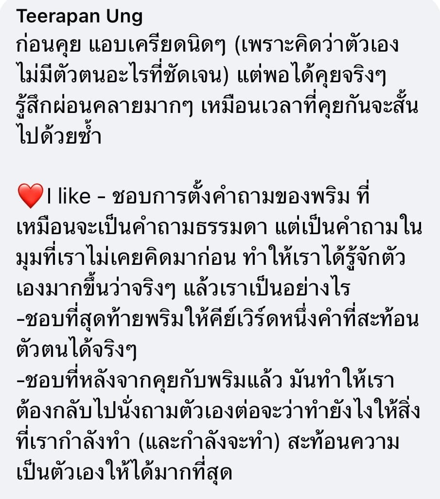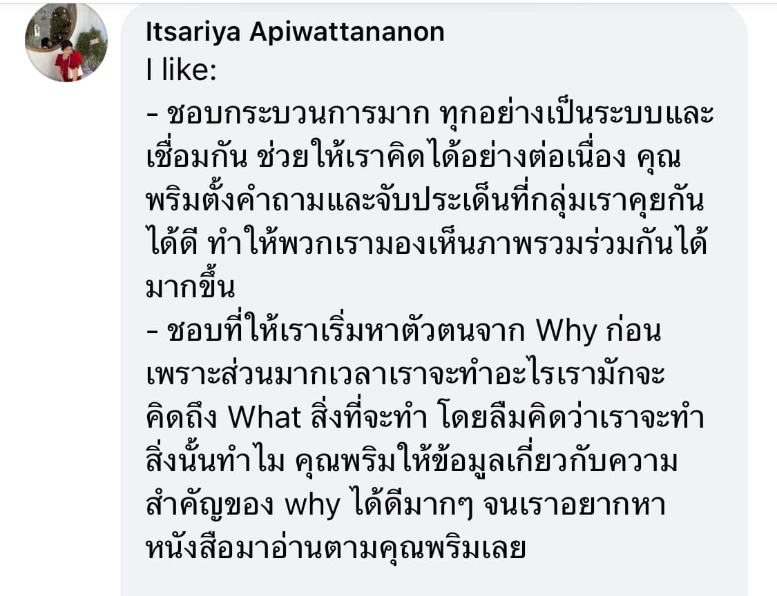 - พริมเชื่อว่าการค้นพบเป้าหมาย เหตุผลเบื้องลึกในการทำงานของเรา จะทำให้เรา
